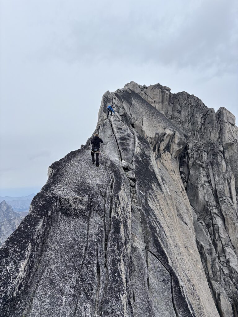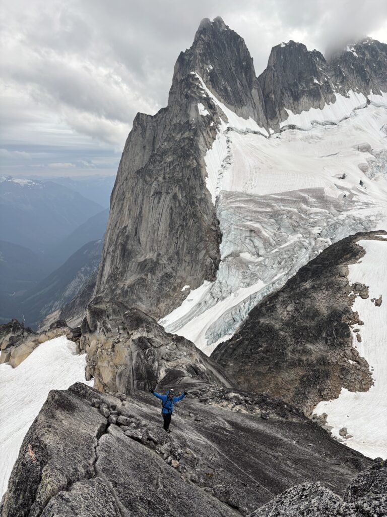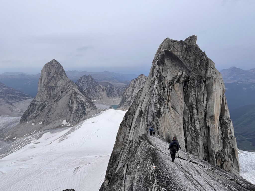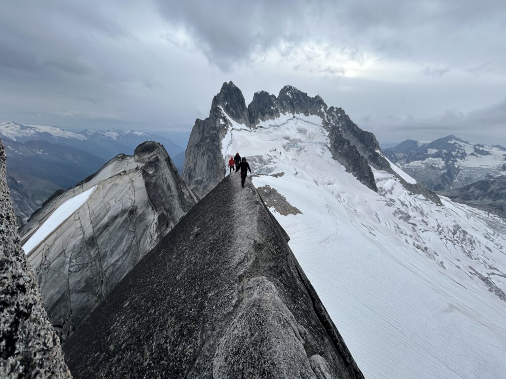 As we descended we passed throngs of people booting up to climb Pigeon Spire. No less than 10 parties and perhaps even 15 were vying for the top. Notably, most parties were not roped up for the glacier, with it’s hidden or weak snow bridges, but were carrying a full rack to climb the summit. Somehow the priorities felt wrong, but everyone has their own risk levels and comfort zones. We felt it was prudent to rope up for the glacier and stayed tied in until the dry basin below.