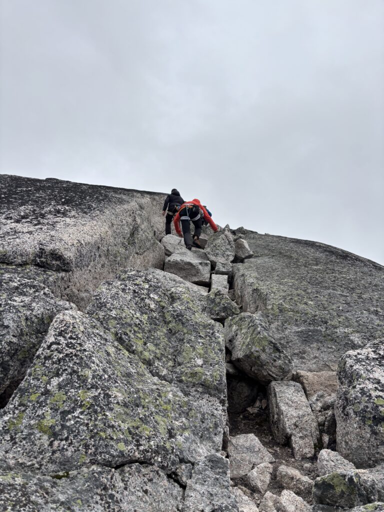 Not wanting to get caught out by the rain we were quick to escape the summit and elected to just down climb the crux. This part was quite exposed, but the off-width section is fairly secure. After that it was easy climbing and scrambling to return to the base of the route. We set off for the tents after and crashed out with some dinner and a well earned rest.