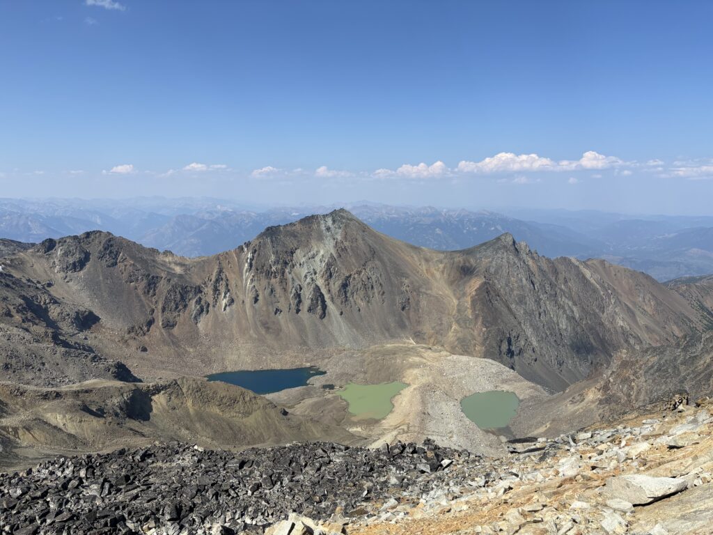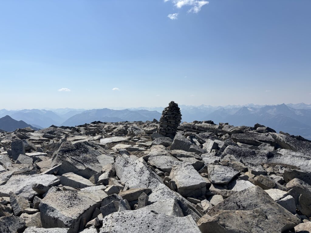 After a snack break we returned to the gullies and benches below and scrambled back up to the massive cairn. That lead us to a long and pleasant return on open ridge line up to Stamp Peak. Save for a bit of slogging back up Stamp it was as easy as it gets. Once we had returned to my truck we had a nerve wracking descent down the Gray Rock Mine Road. The 4×4 community comes up here for fun, so it can’t be all bad, but this was certainly my limit in the truck. Once we reached terrafirma on the service roads below it was smooth sailing back home. Another wonderful outing in the Bridge River area was concluded!