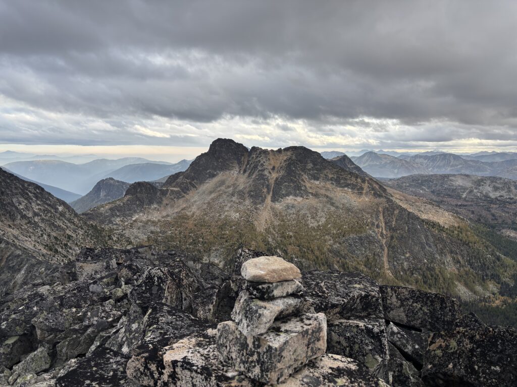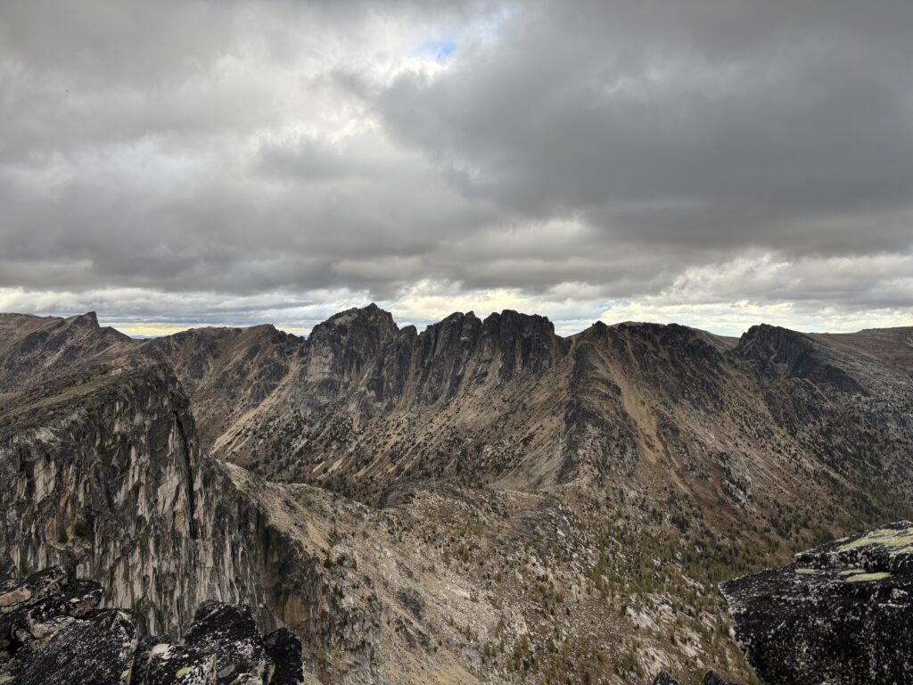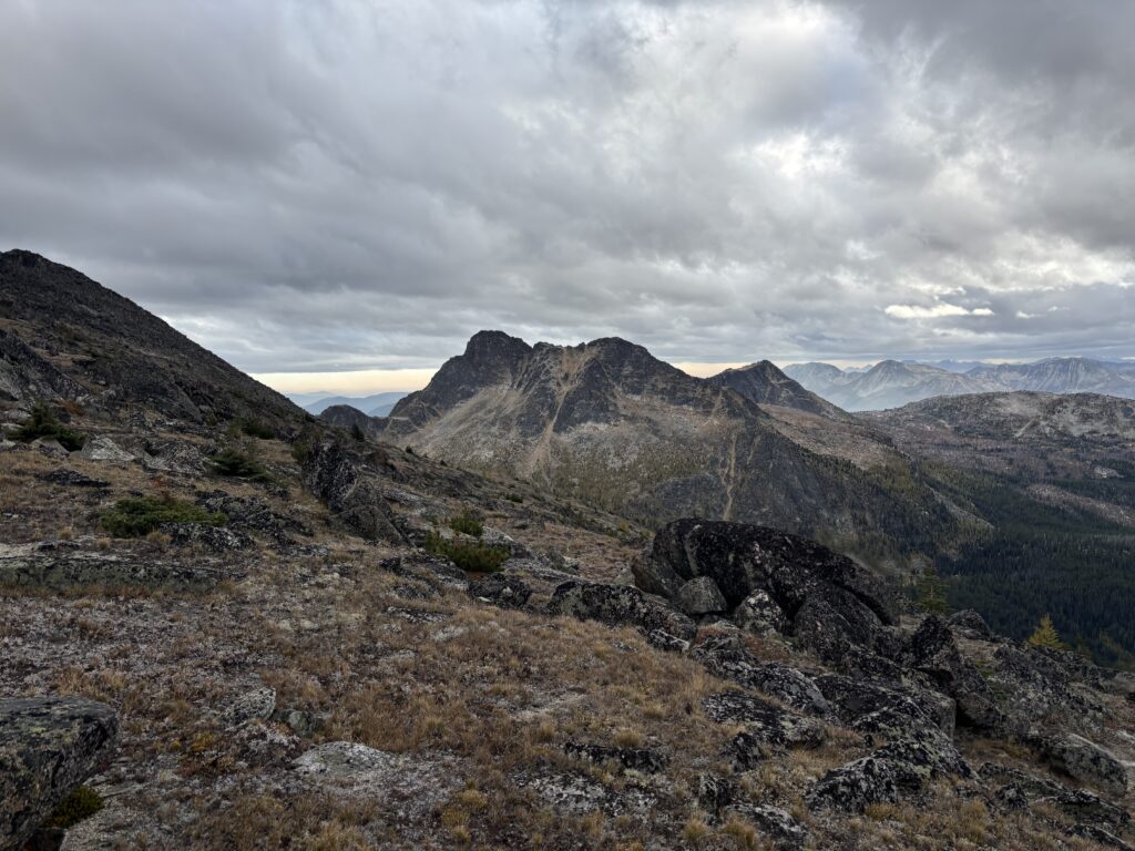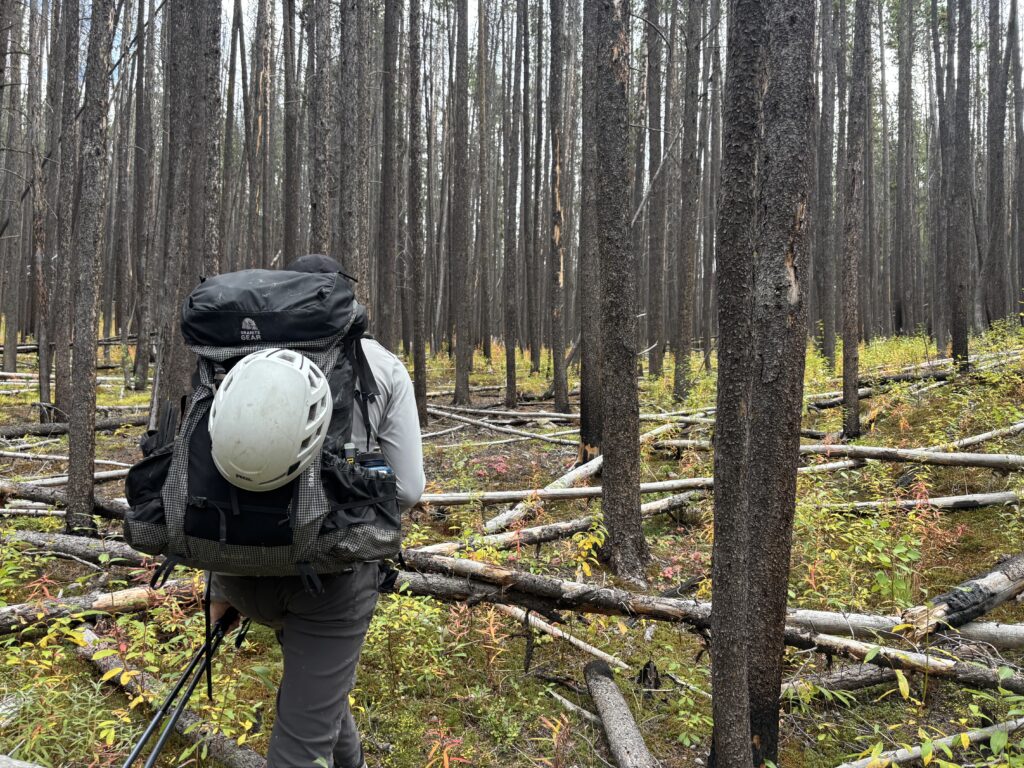 Throughout the years talk of climbing in the Cathedral Park area has come and gone within my friend circles. It’s a rather interesting group of summits with some supposedly phenomenal climbing. It also marks the eastern most extent of Matt Gunn’s scrambles of SWBC and many scramblers and climbers come to do the highest summit: Grimface Mountain alone. In recent years a fire swept through the area and that’s left access to the lodge in limbo while trails are ridden with deadfall or not accessible at all. Finally in 2025, the area saw some revitalization with a new bridge starting construction and a clean sweep of many of the trails. That was a convenient change of course for Alex and I, as we were planning a two objective and Alex happened to suggest Cathedral. Specifically, he wanted to do the Matriarch-Macabre-Grimface traverse. This is a popular route that goes at 5.7 A0 and involves a fun multi-summit traverse across Matriarch Mountain, Macabre Tower and then finally up to Grimface.