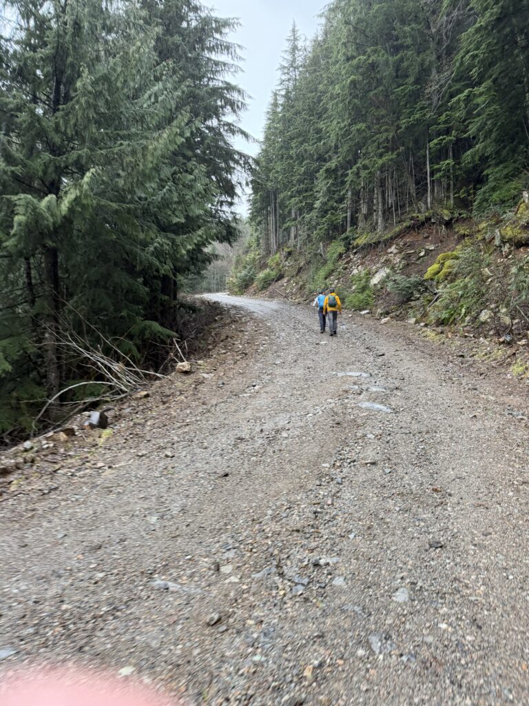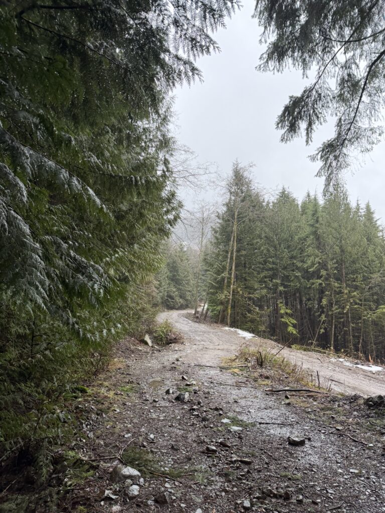 We pulled up to the soggy trailhead around 8:30am and followed a road and then trail up through the forest. Despite how rainy it was, the forest was quite nice. Once we were sufficiently drenched, which was rather quick, we didn’t bother taking in the scenery and pushed on as quickly as possible. There wasn’t much to note by the time we reached Campbell Lake and we jogged down the service road and then up through second growth to gain the south ridge. From there we ascended up open forest to the summit.